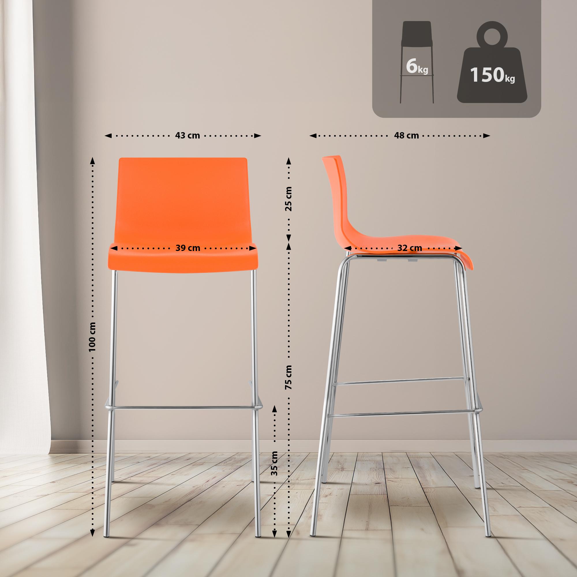Barstolen model Hoover vil, med sit moderne design og unikke udseende, passe til næsten enhver stil og vil pynte i enhver bar. Det robuste 4-ben kromstel sikrer at stolen står sikkert og gør barstolen stabelbar. Det ergonomisk formede sæde, ryglænet og fodstøtten gør, at man sidder komfortabelt i timer.