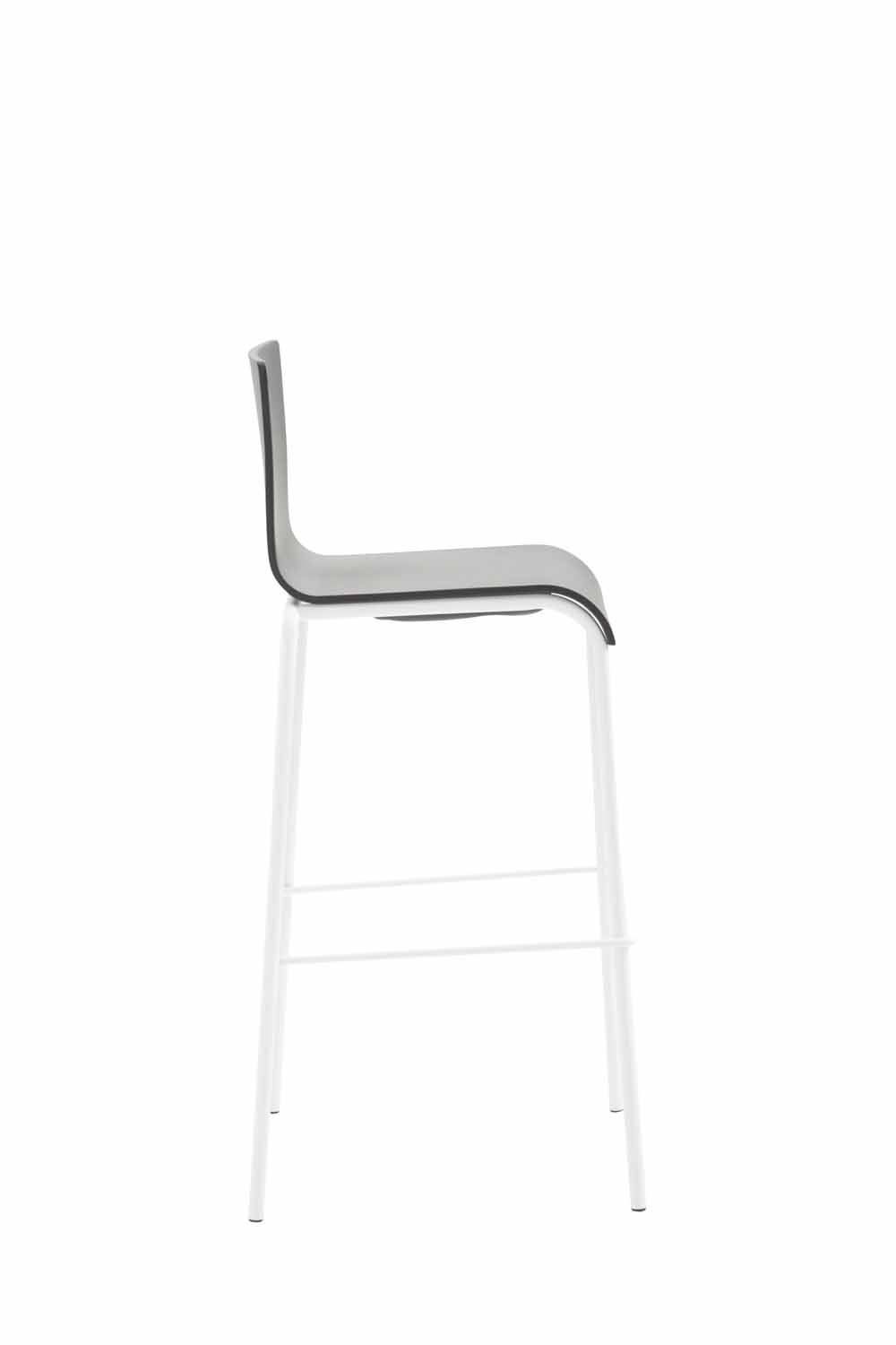 Barstol Kado, kunststof sort, ben hvide, runde – stabelbar
