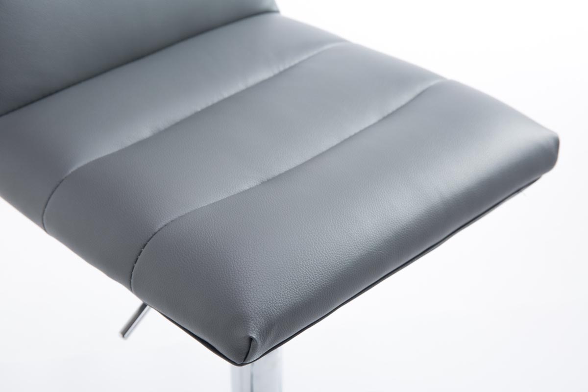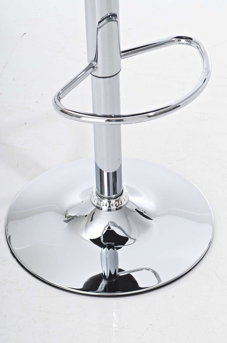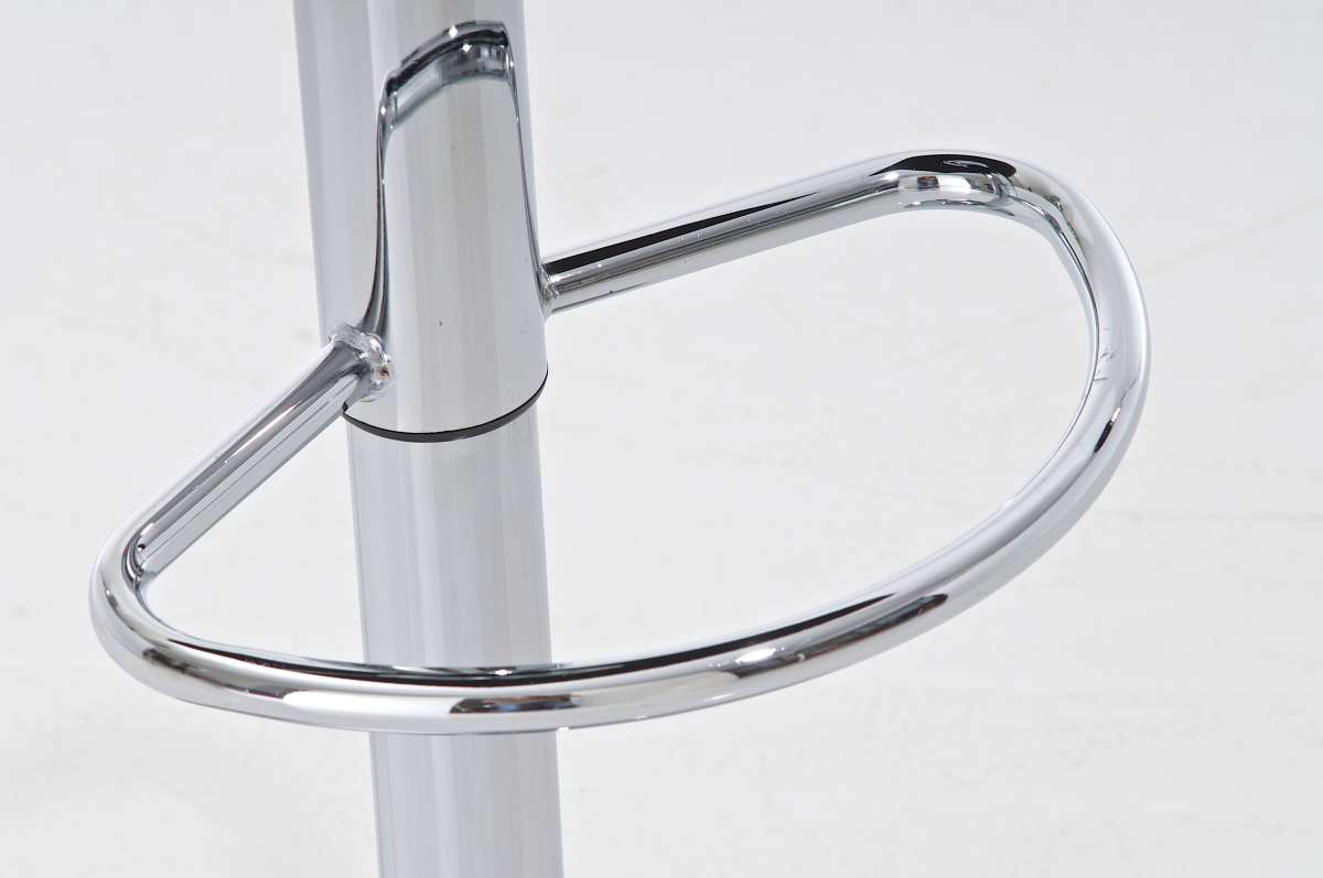 Ved hjælp af metalhåndtaget kan denne model trinløst justeres i den ønskede højde. Den stilfulde fodstøtte, der sikrer en rigtig god siddekomfort, kan justeres synkront med sædehøjden. Rammen er i metal i krom-look, og sædet kan drejes med fodstøtten 360°. Gulvbeskytteren under foden forhindrer ridser på gulvet.