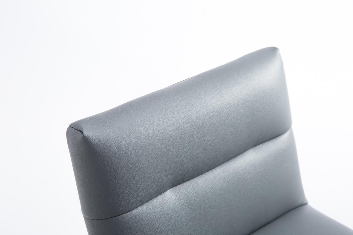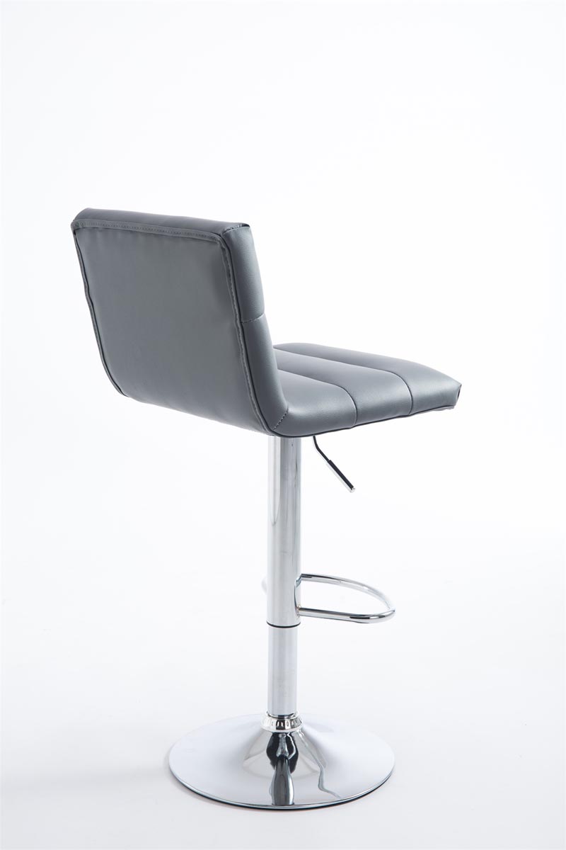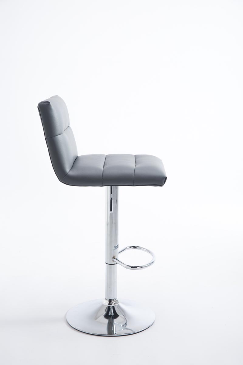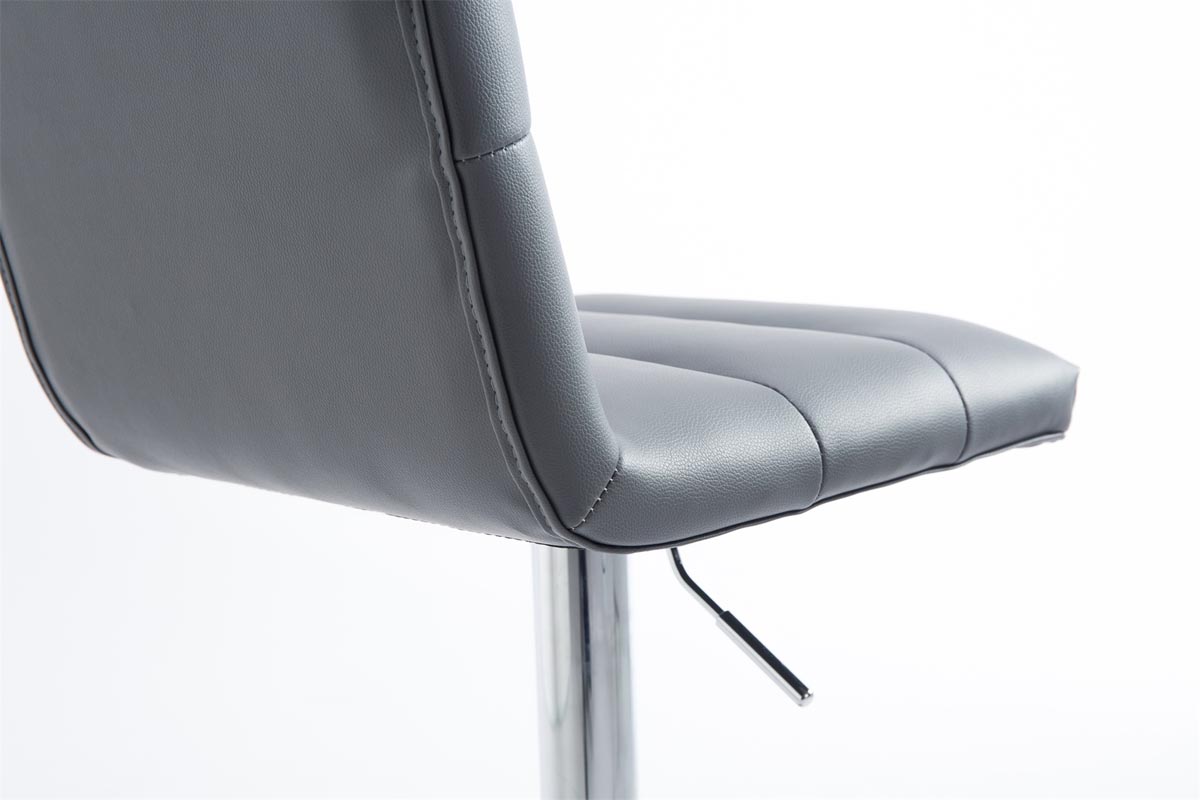 Ved hjælp af metalhåndtaget kan denne model trinløst justeres i den ønskede højde. Den stilfulde fodstøtte, der sikrer en rigtig god siddekomfort, kan justeres synkront med sædehøjden. Rammen er i metal i krom-look, og sædet kan drejes med fodstøtten 360°. Gulvbeskytteren under foden forhindrer ridser på gulvet.