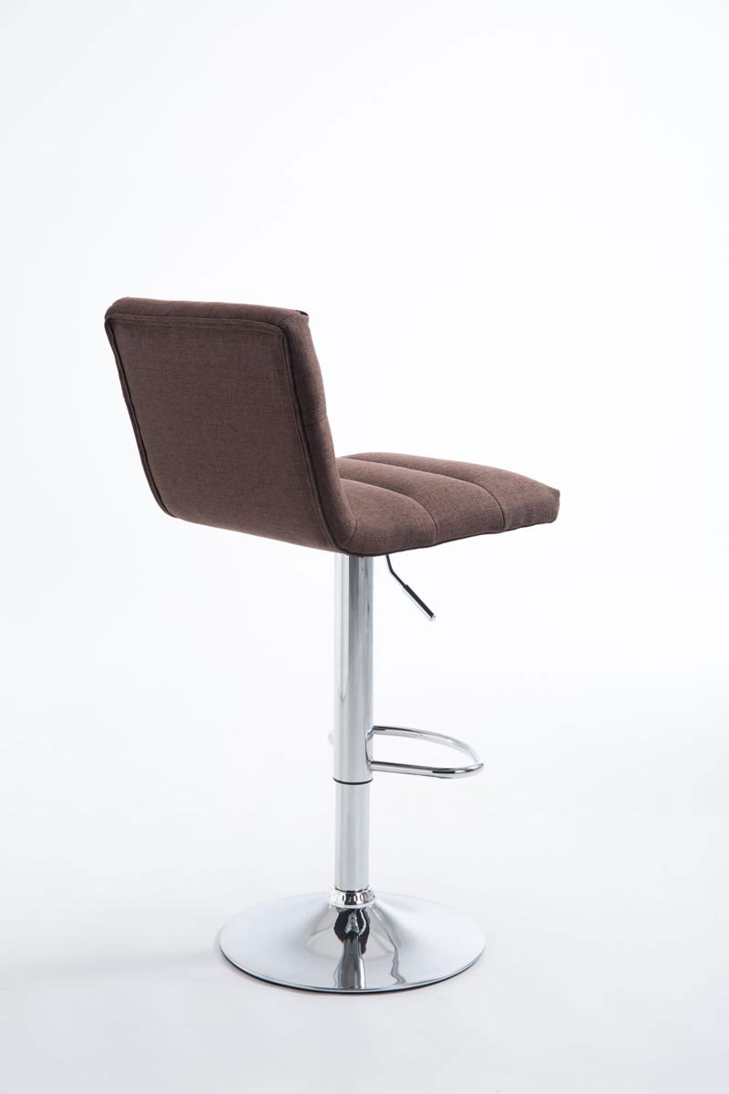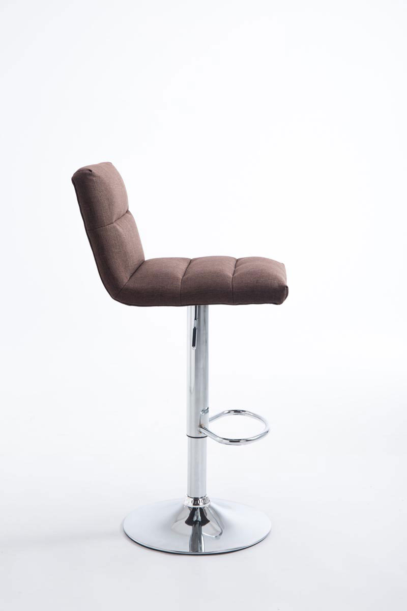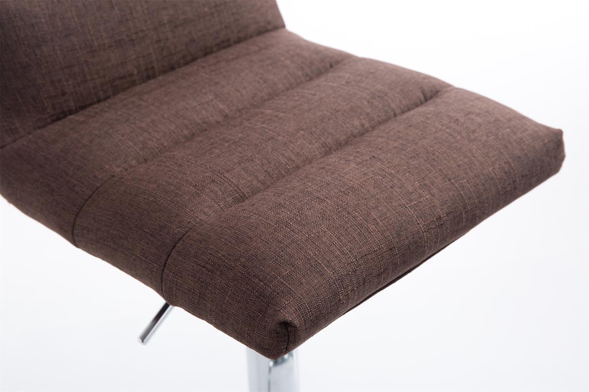 Ved hjælp af metalhåndtaget kan denne model trinløst justeres i den ønskede højde. Den stilfulde fodstøtte, der sikrer en rigtig god siddekomfort, kan justeres synkront med sædehøjden. Rammen er i metal i krom-look, og sædet kan drejes med fodstøtten 360°. Gulvbeskytteren under foden forhindrer ridser på gulvet.