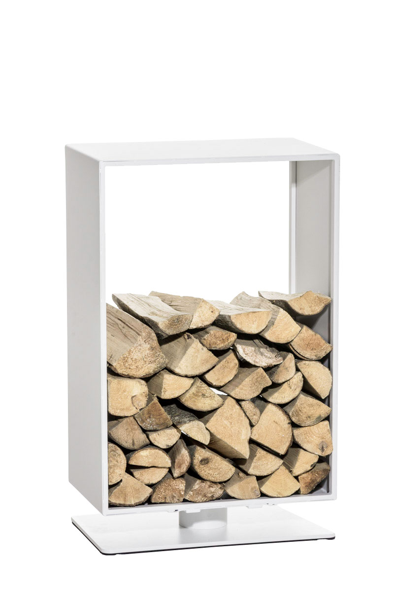 Denne exclusive brændereol i Mat-hvid er et smukt blikfang enhver stue Brændestativet er fremstillet i materialer af høj kvalitet, den er håndlavet i højeste kvalitet. Et smukt møbel uanset om det er i stuen, i sommerhuset eller i lobbyen på hotellet, og så er den pladsbesparende. Håndlavet kvalitetsprodukt