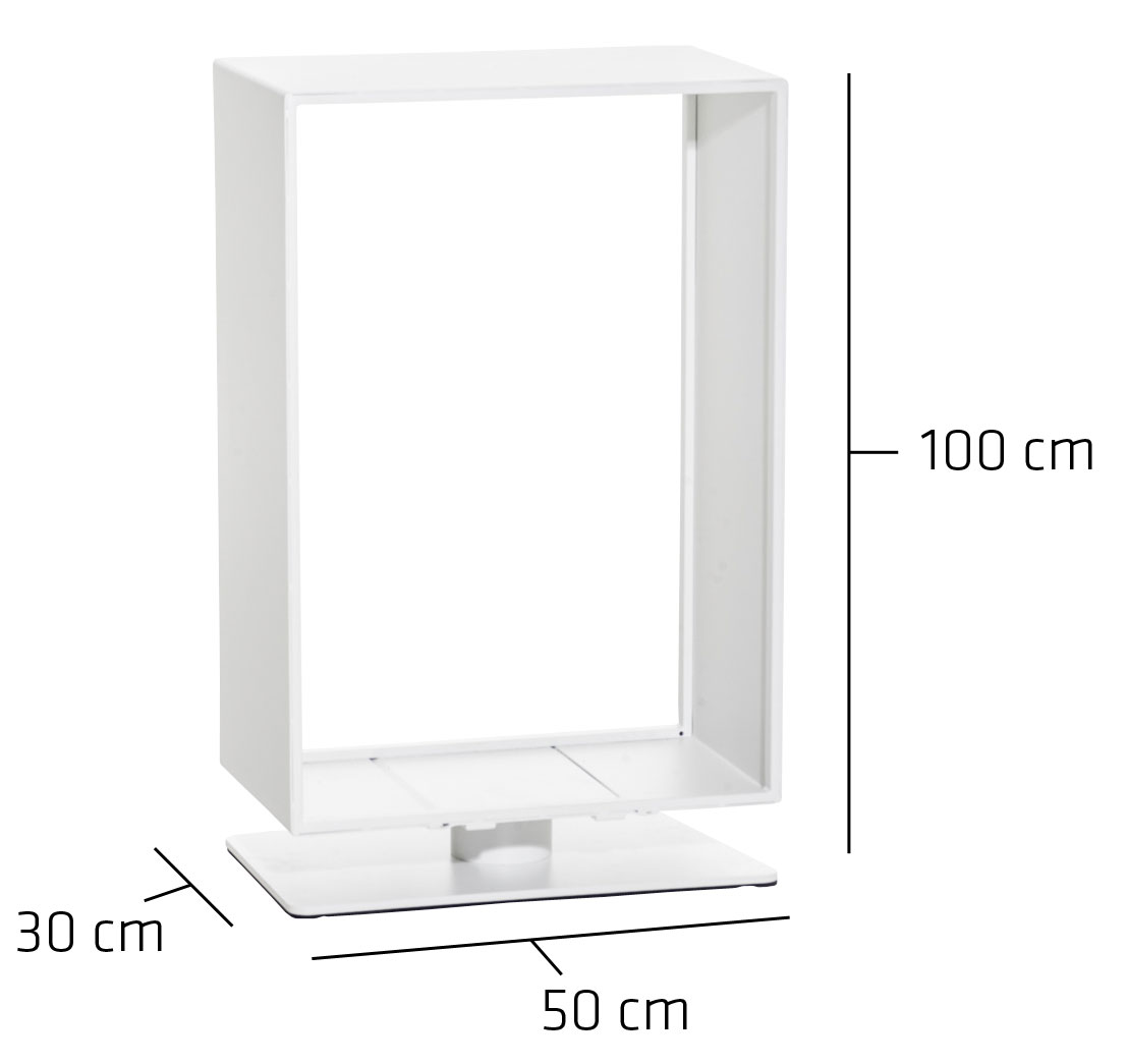 Højde: 100 cm Bredde: 50 cm Dybde: 30 cm Materiale: Pulverlakkeret jern af høj kvalitet Farve: Mat-hvid
