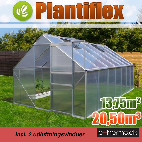 Ruderne i væksthuset er af 4 mm polycarbonat, der er et stærkt og slagfast materiale. Op til 200 gange stærkere end glas i samme tykkelse. Samtidig har det en god isoleringseffekt.