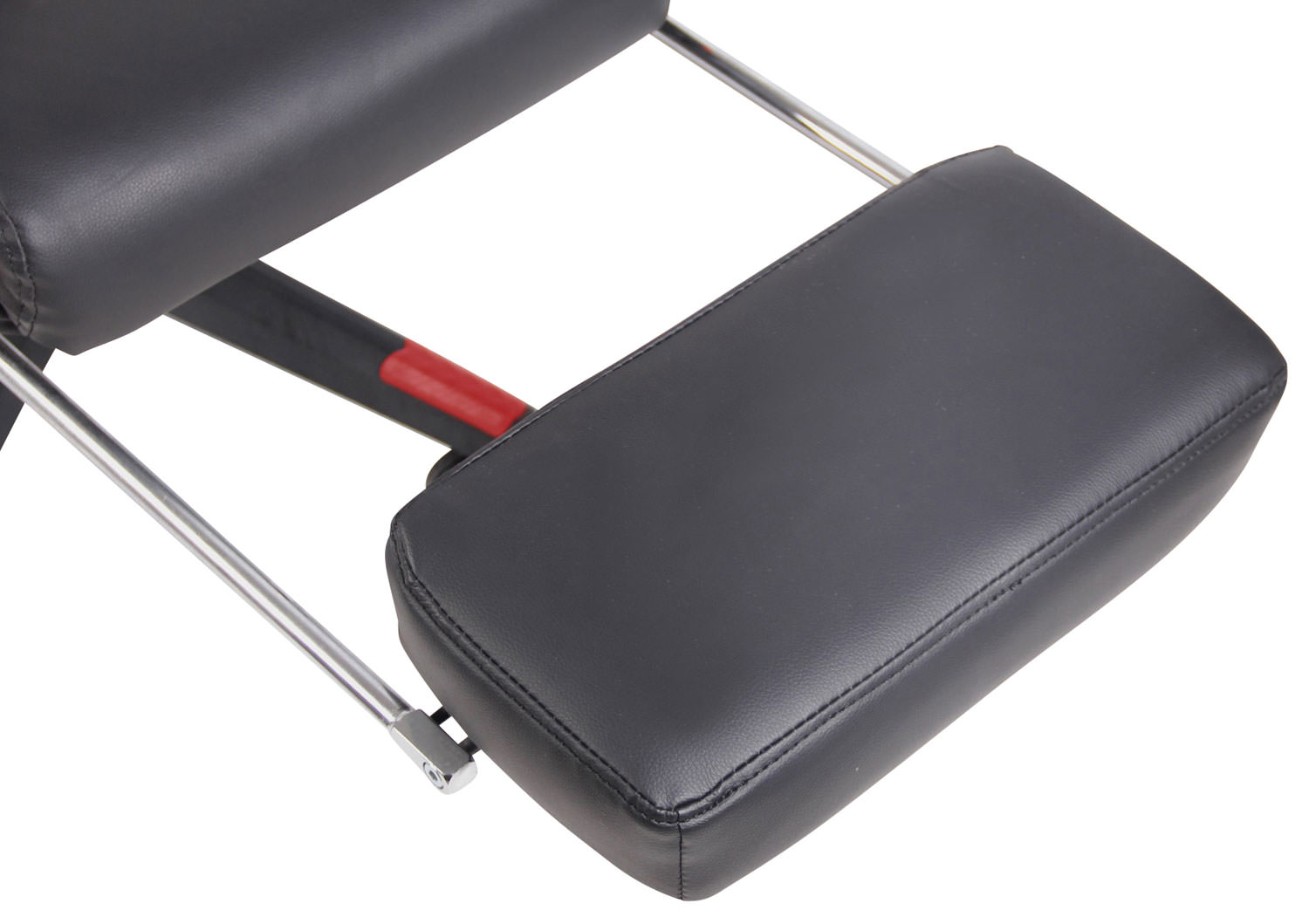 Denne imponerende kontorstol imponerer ikke kun med sit elegante udseende, ingen kan narre den, når det kommer til komfort. Højkvalitetsbetræk og det lette pleje af syntetisk læder sikrer en behagelig siddeoplevelse, selvom du sidder længe. Takket være den justerbare sædehøjde og det specielle ryglæn garanteres der desuden altid en behagelig siddestilling, og armlænene kan også justeres i højden og drejes. Ryglænet kan ligges vandret, den aftagelige hals og lændepude giver også en behagelig lindring. Lændepuden har en massagefunktion med 3 intensitetsniveauer. Skrivebordsstolen er stabil på fem glatløbende hjul og en ramme lavet af robust plast.