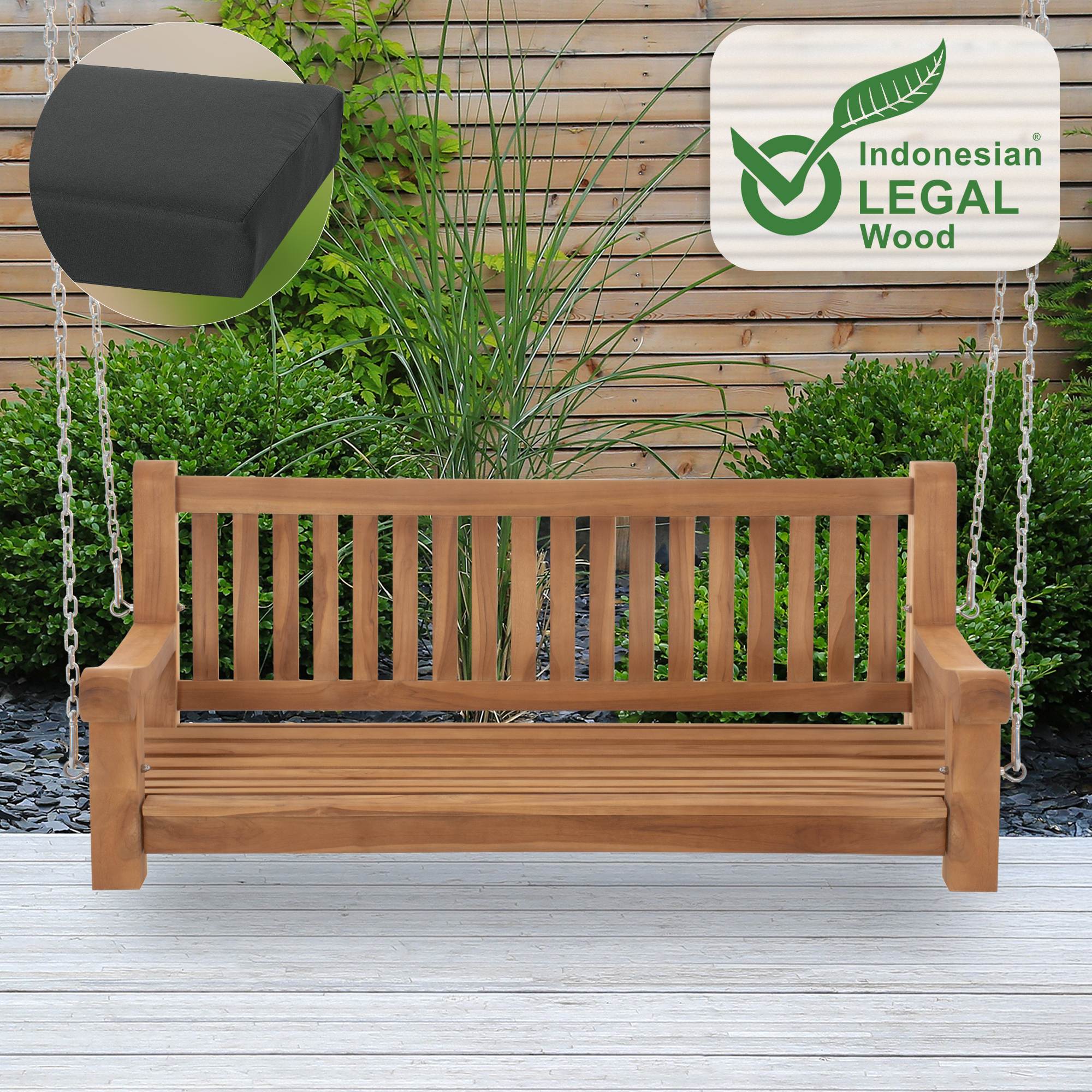Gyngebænk Joyce V2, 150 cm, teaktræ+mørkegrå hynde