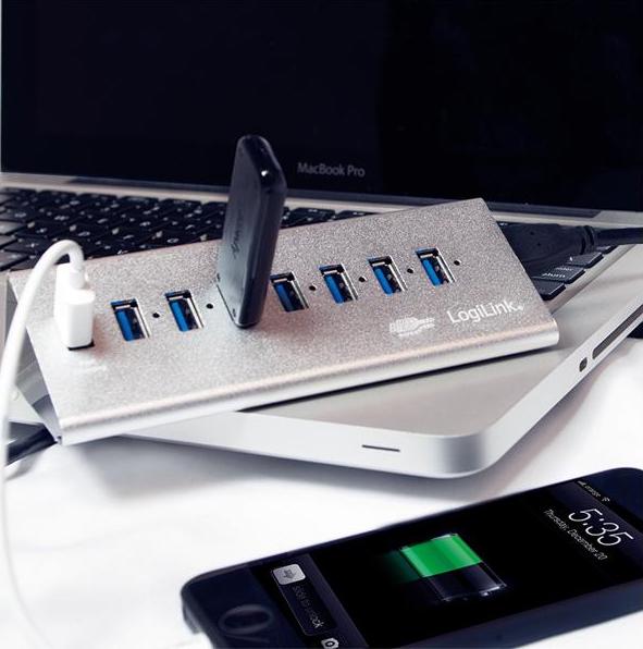 Nyhed! LogiLink USB 3.0 hub 7 port + 1x hurtig opladnings port.