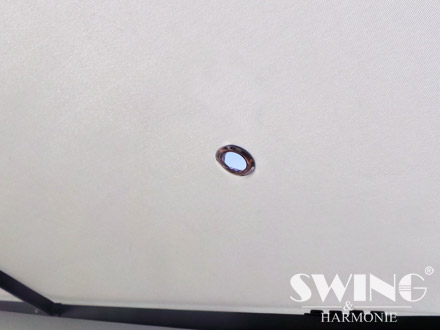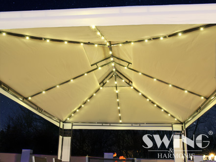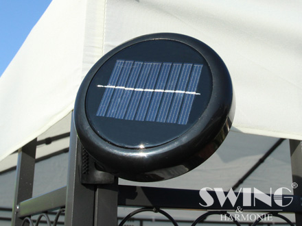 Pavillonen har også LED-belysning, bestående af 60 lysdioder, der kan tændes og slukkes manuelt. Det indbyggede genopladelige batteri oplades i løbet af dagen med det solfanger-modul, der også er inkluderet i leveringen.