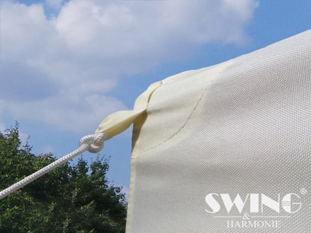 Hjørnerne er beklædt med teltdug, der er aftagelig.