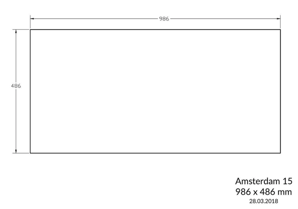 - Udskæringsmål (B x D): 986 x 486 mm
