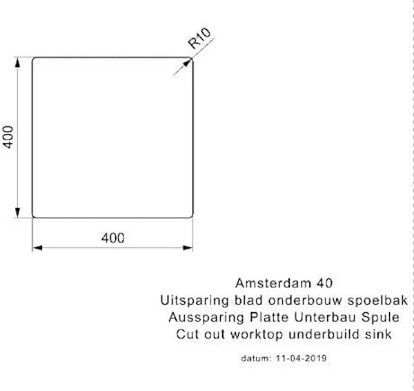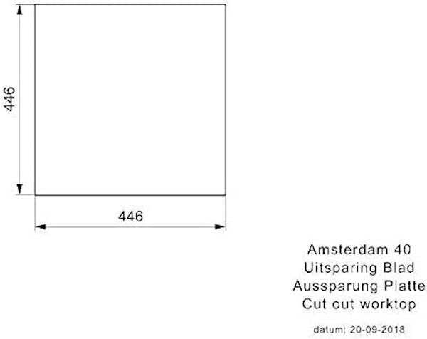 - Udskæringsmål underkonstruktion (B x D): 400 x 400 mm