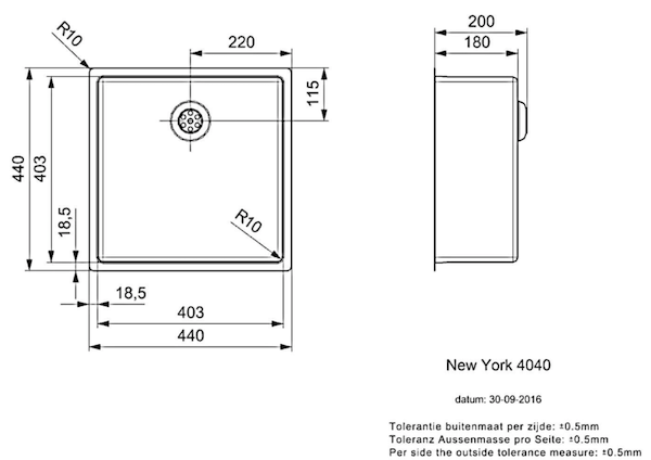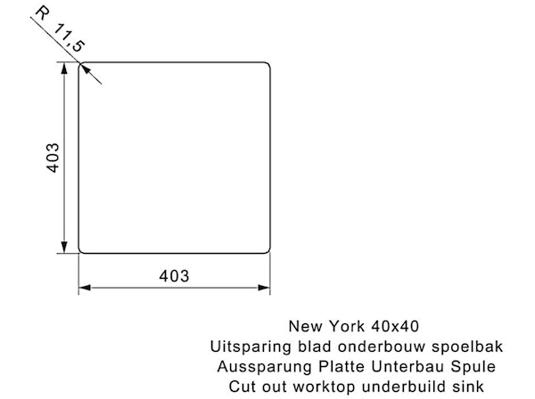 - Udskæringsmål underlimning / udsparing underkonstruktion (BxD): 403 x 403 mm.