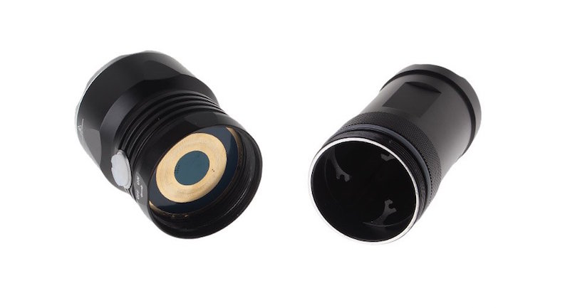 Lygten anvender 3 batterier, som i modsætning til de almindelige lommelygter, sidder ved siden af hinanden.