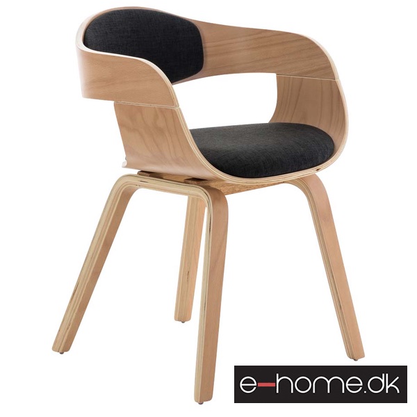 Spisestuestol Model Kingston Natur-træ, Mørkegrå stof betræk
