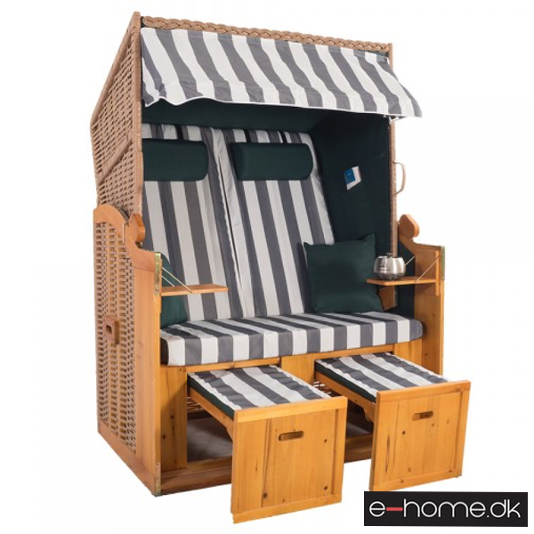 Anholt strandkurv – 2-personers – Grøn-Grå blokstriber