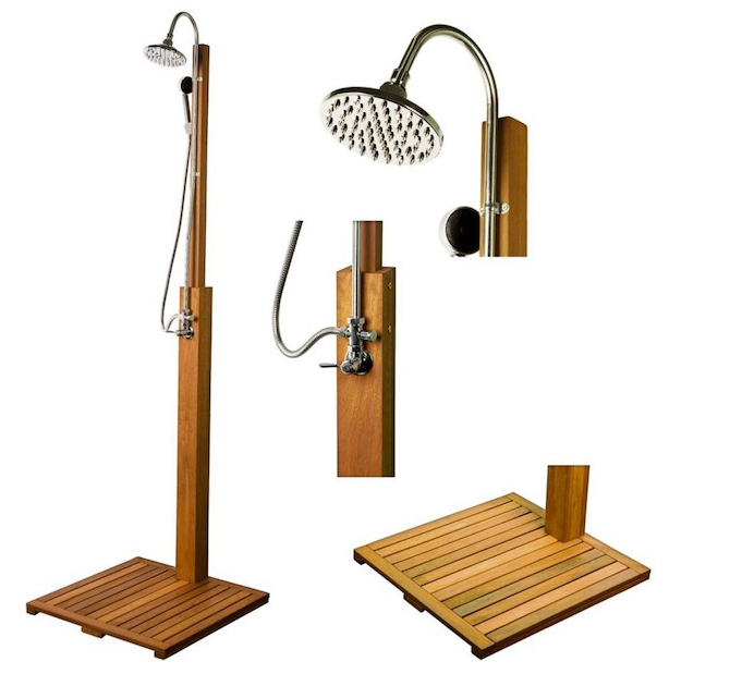 Luksus udendørs have bruser udført i hårdt træ.