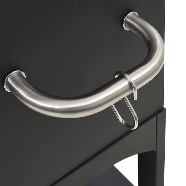 Ovnen er særdeles robust og holdbar, og den er fremstillet af pulverlakeret stål i høj kvalitet. Brandbakken kan tages ud, hvilket gør det nemt og hurtigt at rengøre ovnen. Den praktiske hylde nedenunder giver plads til opbevaring af ovnhandsker og andet udstyr. Ovnen leveres også med et indbygget termometer, som viser den indvendige stegetemperatur. Takket være de to hjul er det nemt at flytte rundt på røgeren. Pakken indeholder desuden pizzasten.