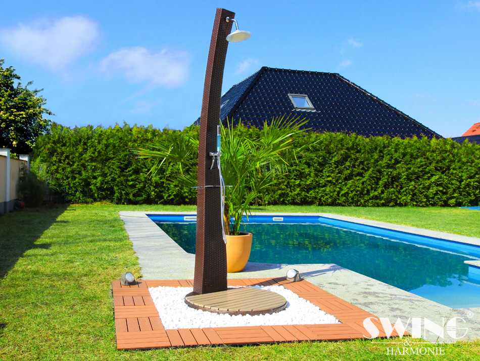 “Wave” Polyrattan bruser er en elegant og smuk havebruser. Den er meget nemt at rengøre. Wave har et stort “Rainfall” brusehoved og en håndbruser, som hver har en separat regulator. Dette giver dig mulighed for at regulere strømmen af vand via brusehovedet eller håndbruser eller begge på samme tid.